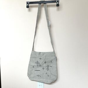 NWT Tan linen crossbody bag. Embroidered Aztec geometric designs. See all photos for full description & measurements