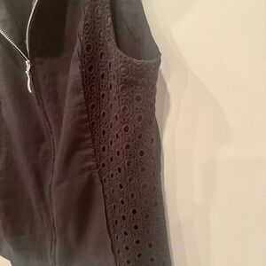 Linen Blend Black Eyelet Lace Zip Up Blend Vest Sz Medium Whimsigoth Romantic