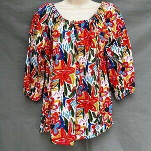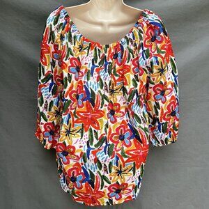 Linen Blend By Heater Orchard Multicolored Off The Shoulder Top Shirt Sz L