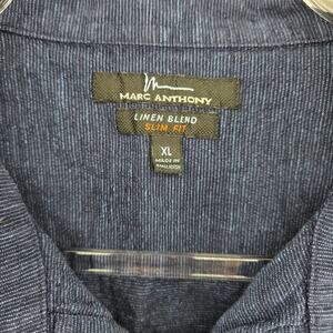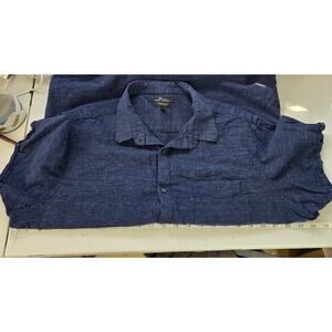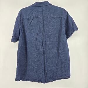 Linen Blend Collared Button Down Size XL Navy Resort Casual Vacation Classic