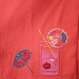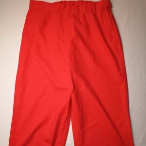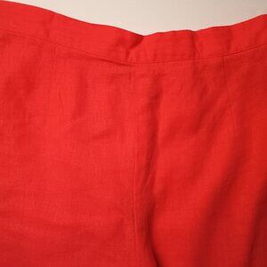 Linen Blend Cropped Pants Size L Hot Coral Pink Tiki Design High Rise Straight