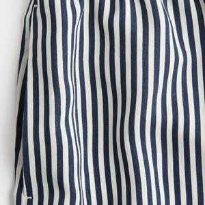 Loose-fit shorts in a woven linen and viscose blend. Elasticized, drawstring waistband, discreet side pockets, and a small slit at hems. White and navy stripe in color. New with tags attached.