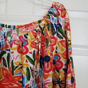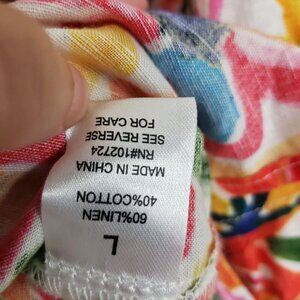 Linen Blend Floral Shirt Colorful Bright Tropical Vacation Womens Size Large