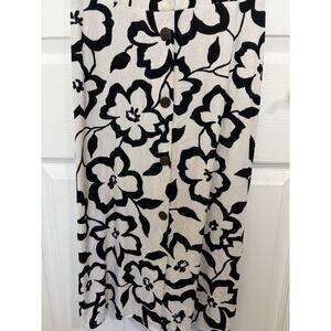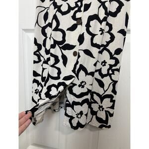 Linen Blend Floral Sleeveless Button Midi Dress Size Medium Beachy Coastal Boho