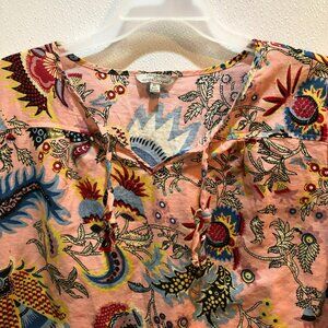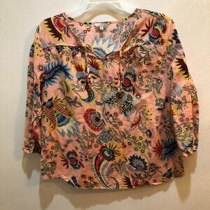 Linen Blend Hester & Orchard Size XL 3/4 sleeve Pink Floral Boho Top