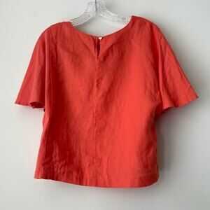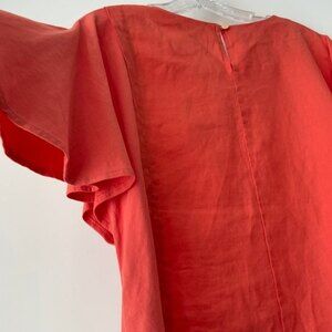 Boat Neck Flutter Sleeve Top Decorative Buttons