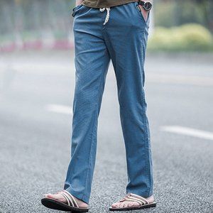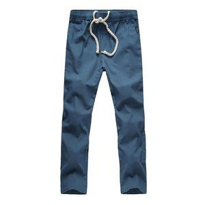 Linen Blend Lightweight Solid Casual Pants Drawstring Rope Pockets Elastic Waist