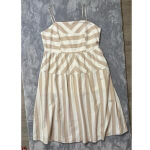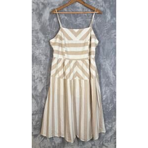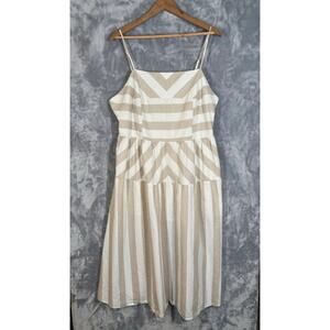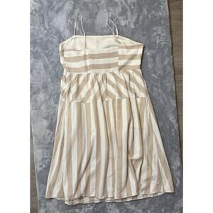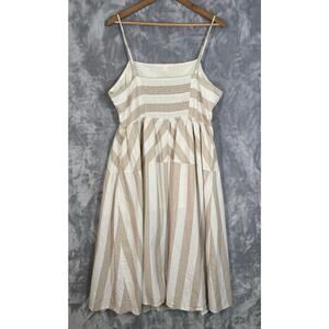 Linen Blend Neutral Beige Stripe Sleeveless Dress XL Midi Smocking Casual H&M