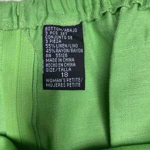 Linen Blend Pants Cropped High Waist Tapered Leg Green Womens Size 18 Petite 18P