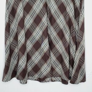Linen Blend Plaid Midi Skirt Plus Size 16 A-line Lightweight Academia Western
