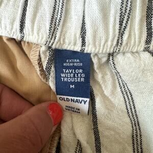 Linen Blend Striped White and Navy Pants Trousers High Rise Size Medium