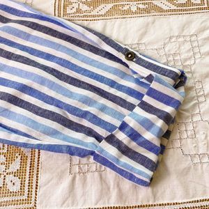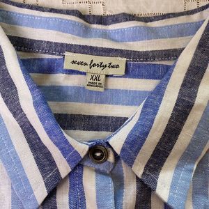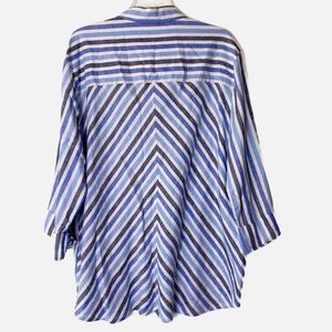 Linen Blend Tunic Top By Seven Forty Two Size XXL Button Up Stripe 3/4 sleeve