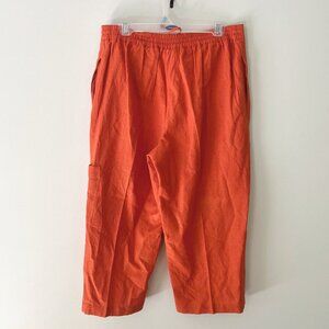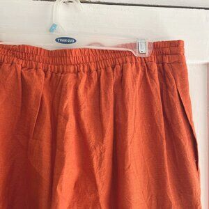 EUC burnt orange colored linen and rayon wide legged cropped pants from Coldwater Creek! No flaws. Features drawstring waist with elastic, hand pockets, and side leg pocket. Super comfy but easy to dress up, these will be your favorite lightweight pants! Naturally breathable they are great for the beach and for traveling! Lagenlook, coastal, relaxed vibes!