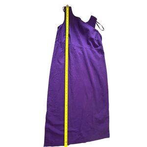 A versatile deep purple shift dress crafted from a soft linen-cotton blend, offering breathable comfort and elegant simplicity. The sleeveless design provides a clean, classic silhouette suitable for layering or wearing alone.