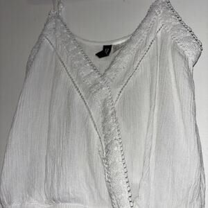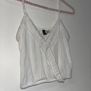 Linen Blouse Cami Sz 2 S Cottage Core Fairy Lace Beachy Peasant Organic Flowy