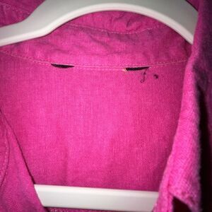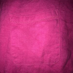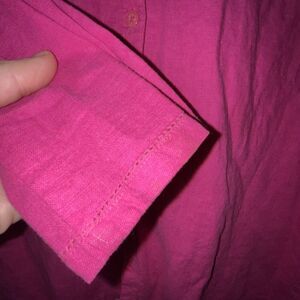 Linen Blouse Top Sz Small Fuchsia Pink Button Down Long Line Side Slits Beach