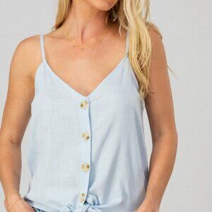 This colorful linen cami with adjustable straps and coconut buttons is the perfect go to summer top! Dress it up or dress it down, it will keep you cool and comfy wherever your summer fun takes you!