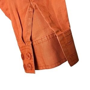 Linen Button Down Womens Tunic Top Lagenlook Boho Minimalist Size XL Orange