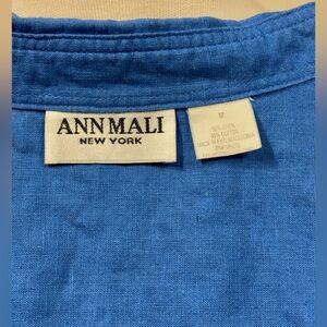Vintage Ann Mali New York blue button-up shirt with a classic collar and front pocket. Perfect for casual or formal occasions. Cute as an oversized look or summer layer.