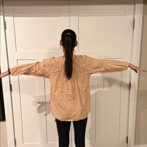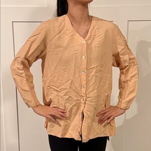 Vintage linen and rayon blouse with beautiful mother of pearl buttons. Peach color. Good vintage condition. Make me an offer.