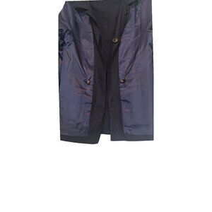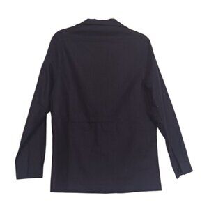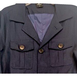 Linen Cargo Jacket L Blazer Pockets Notch Nautical Blue 100% Linen