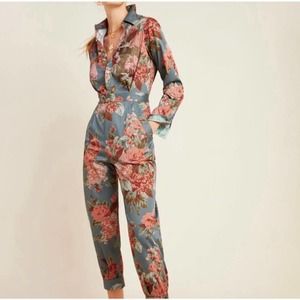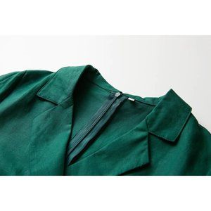 Linen Casual Wide Leg Relaxed Collar V Neck Short Sleeve Jumpsuit Zip M Green