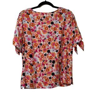 Linen Charter Club Luxury size L 100% linen orange floral short tie sleeves top