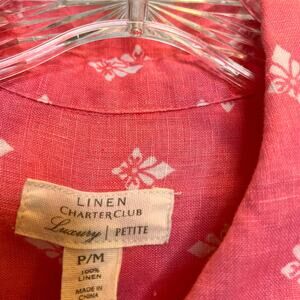 Linen Club Luxury Button Front Pink Floral Long Sleeve Top Petite M