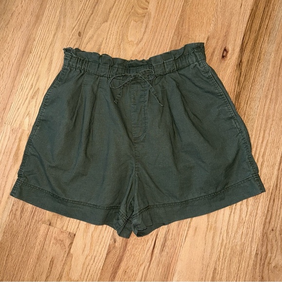 Linen Cotton Green Paperbag Shorts High Rise Elastic Waist Size Small (26-27)