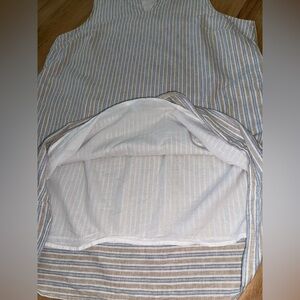 Linen Cotton Striped Sleeveless Beachy Coastal Sleeveless Midi Dress Pockets 3X