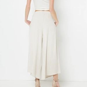 Super, comfortable linen pants with expandable waistline and flaired, cropped legs.