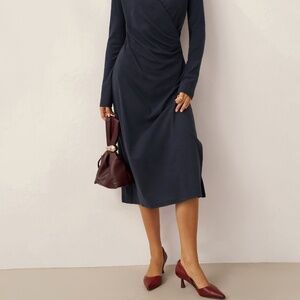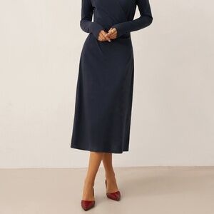 Linen Crossover V-Neck Wrap Stretch Midi Dress MARNIE