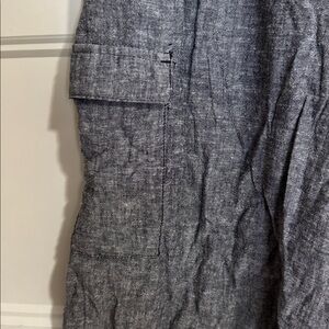 Size Large. Fit like Mediums. Pretty heathered gray color. Side cargo pocket. Worn once. No holes or stains. Smoke free home.