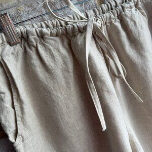 Linen Dream Lagenlook 100% Linen Tie Waist Wide Leg Cropped Pants Women's Size S.