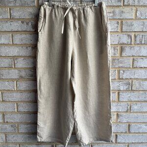 Linen Dream Lagenlook 100% Linen Tie Waist Wide Leg Cropped Pants Women's Size S