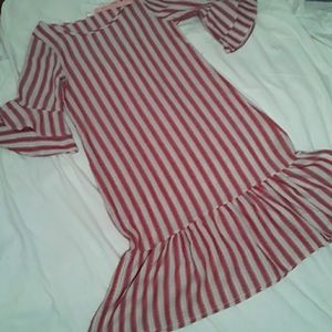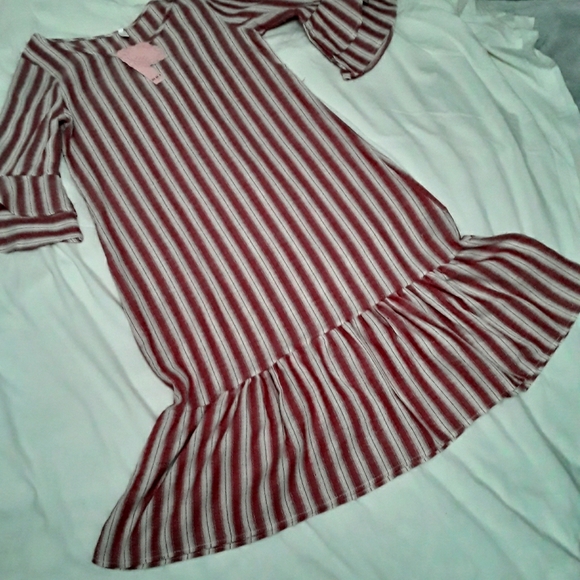 NWT, Linen, 3/4 Fun Flare sleeves, Fun Flare Bottom of dress, Size M, Khaki & Red Striped Dress