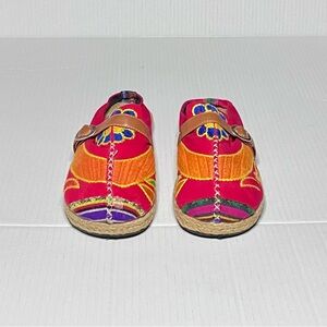 Artsy Bright & Colorful Embroidered, Slide-on Espadrille Clogs, Mules.