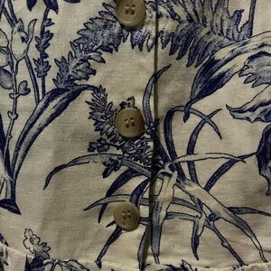 Linen Floral White and Blue Button Down Midi Sun Dress Small Sleeveless