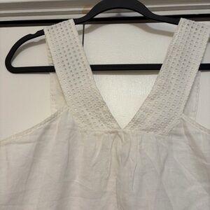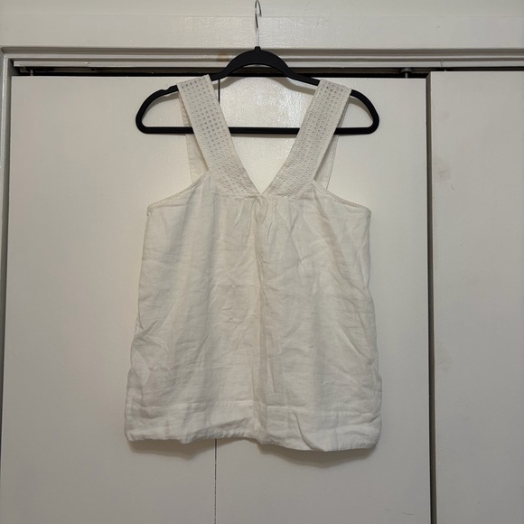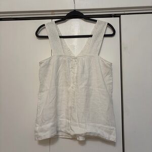Lightweight cream linen tank with wide textured straps and a flattering V-neck. Size 4 but could fit up to a 6 or even an 8? Linen but very soft material. Open to negotiating and offers!!