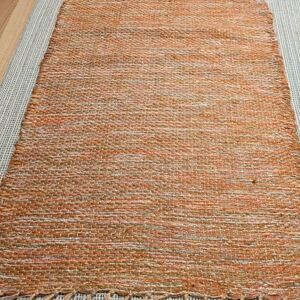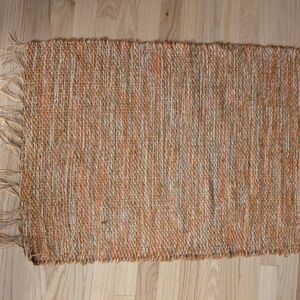 Beautiful orange brown handmade Linen Rug with recycled material. 31.5" x 23.5".