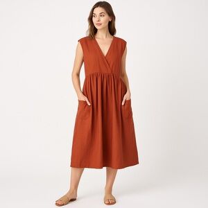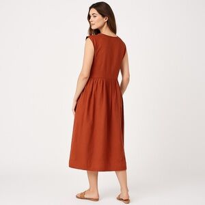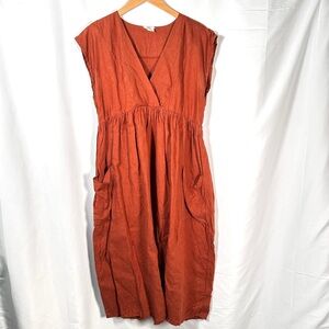 Linen Handmade Studio Linen Rust Midi Dress Pockets Cottagecore Lagenlook M/L