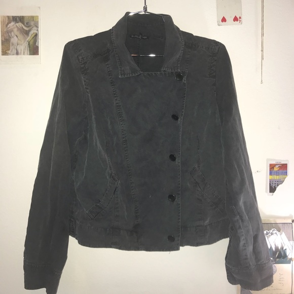 Soft grey linen jacket with buttons and a zipper. Has pockets. Feel free to make an offer or ask any questions