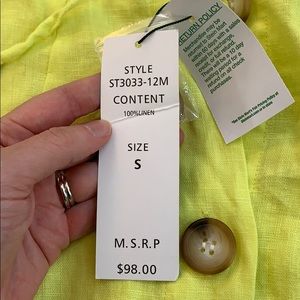 100% Linen! Color is truest to closeup with tag- a bright lemon color. Never worn.