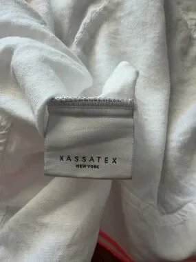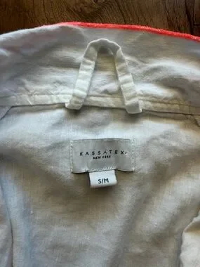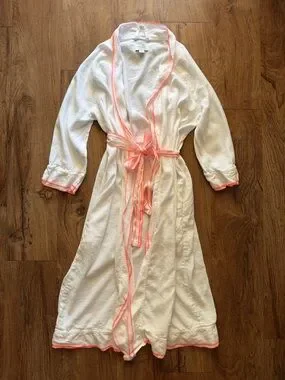 Linen blend Kassatex robe. White with neon pink details.