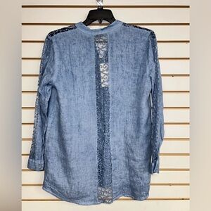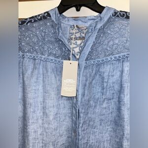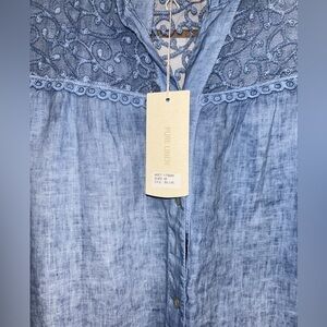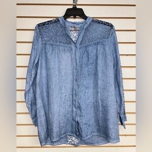 Linen & Lace Bellambra Button Down Blouse - NWT - M - Light Blue Chambray Like