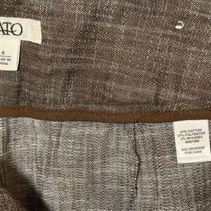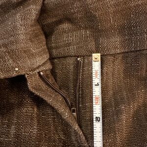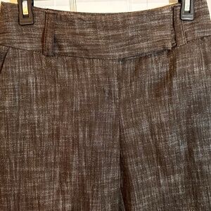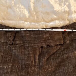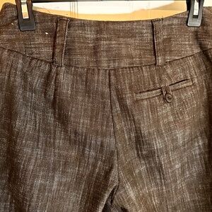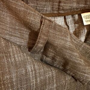 Thick woven linen-look brown/white trousers, perfect for office, travel, dressy or casual occasions.