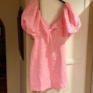 Linen Lux Pink Peony 100% Linen Puff Sleeve Mini Dress Size US 8 AU 12. Gently used and so adorable!