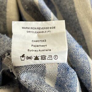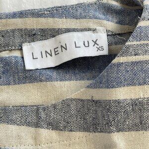 Linen Lux Women Blue Striped Short Sleeve Top Blouse Size XS Pocket Boxy Keyhole