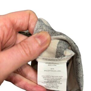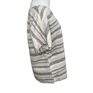 Linen Lux Women's T-Shirt Top in Size Medium. Boxy Lagenlook Fit. The fabric is a Cotton Linen Blend. Small Side Slits. Striped Pattern in gray and Ivory Tones. Great Condition, no flaws.