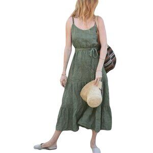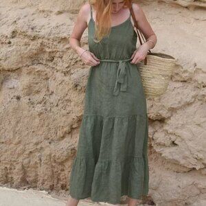 Linen Maxi Dress Spaghetti Strap Sleeveless Boho Vacation Dress Tiered Sundress
